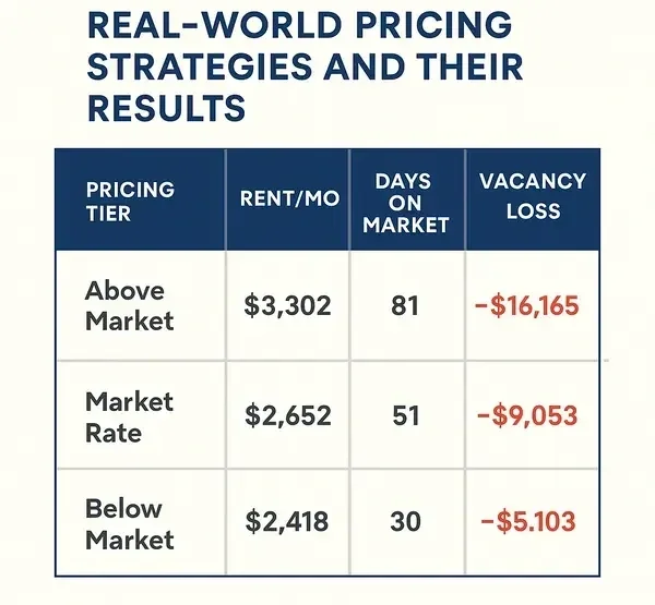 Key point: Rent less and lease faster often outperforms rent more and lease slower. That’s the core of a smart rental pricing strategy.