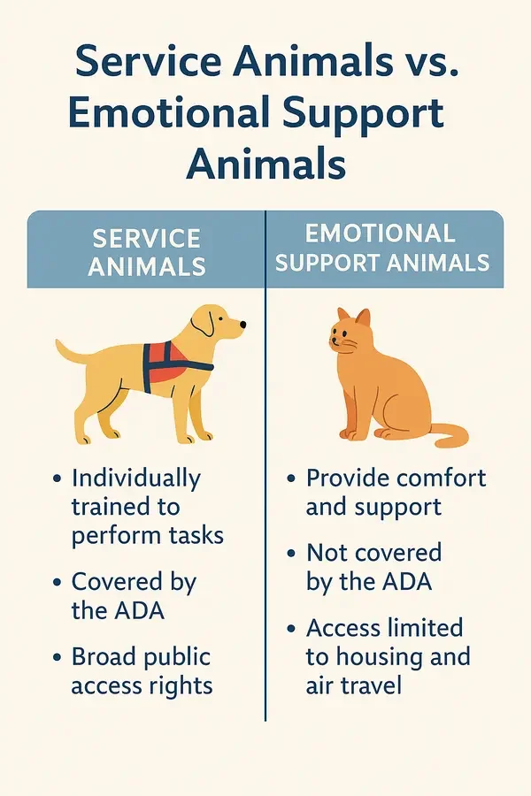 The ADA recognized service animals, granting them public access rights. Emotional support animals were specifically excluded, meaning they are protected under FHA housing rules but not ADA public access laws.2000s: ESA Recognition in Housing and Travel